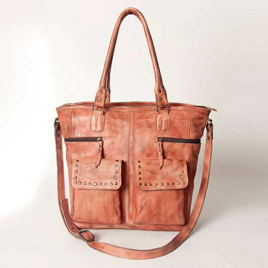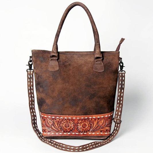 Leopard Hair-On Western Tote - Hand-Tooled Leather Cowgirl Bag