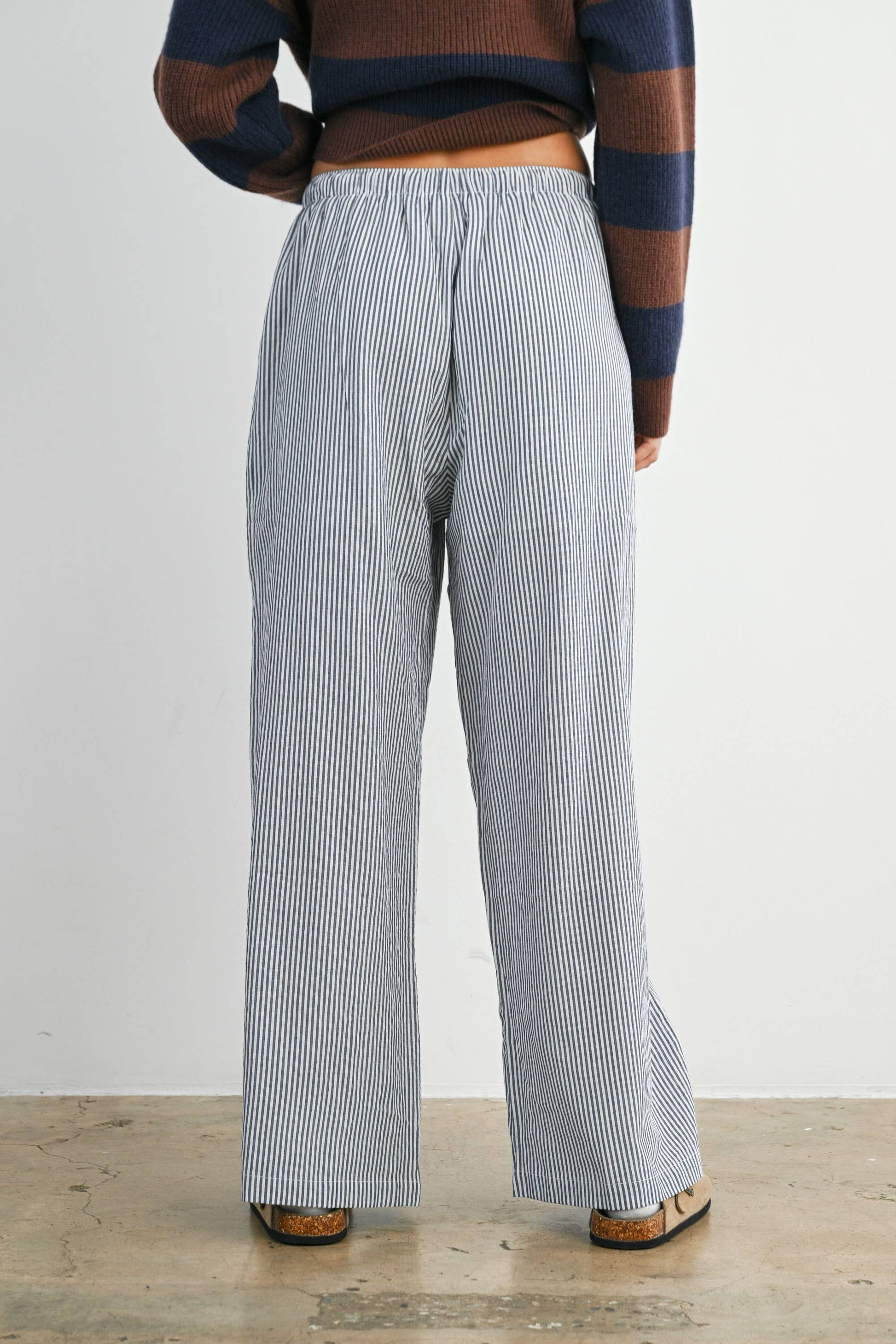 The Drawstring Waist Striped Pants combine casual comfort with effortless style. Featuring a relaxed fit and an adjustable drawstring waist, these pants ensure a perfect fit while keeping you comfortable all day. The vertical striped pattern adds a flattering, elongated look, making them ideal for both lounging and everyday wear. Pair them with a simple top and sneakers for a laid-back, yet put-together outfit.