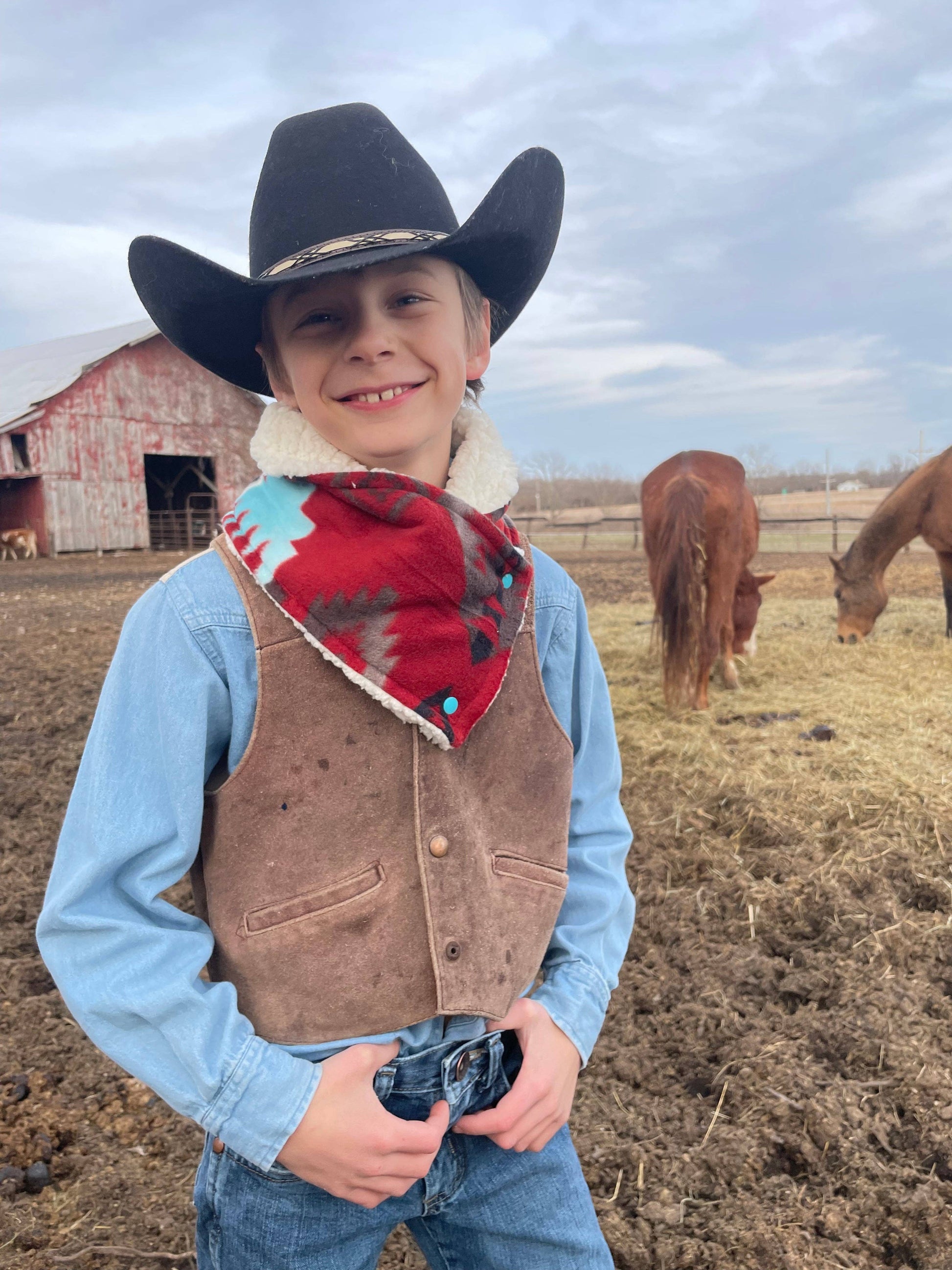 The Dallas Cowboy Cowl is designed for ultimate comfort and practicality. With a soft fleece exterior, this cowl provides reliable warmth while offering two cozy interior options: Sherpa for extra insulation or Minky No Hay for a smooth, plush feel that resists hay, brush, and pine shavings—perfect for those working around animals.