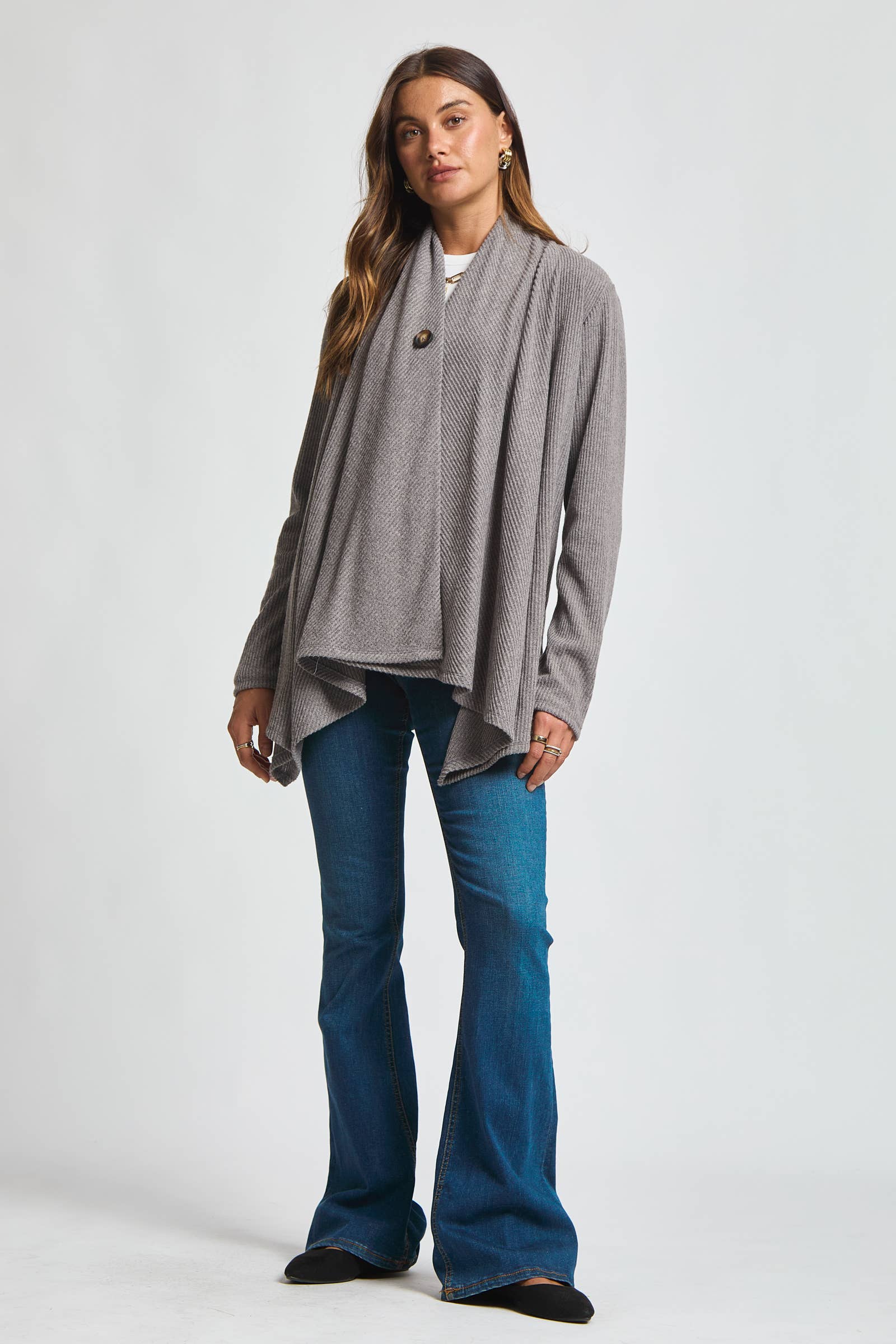Flattering, feminine, and endlessly versatile-- the wrap top is a timeless staple made to suit every shape! Designed with a crossover front that buttons on front where it creates a naturally defined silhouette while offering adjustable comfort.