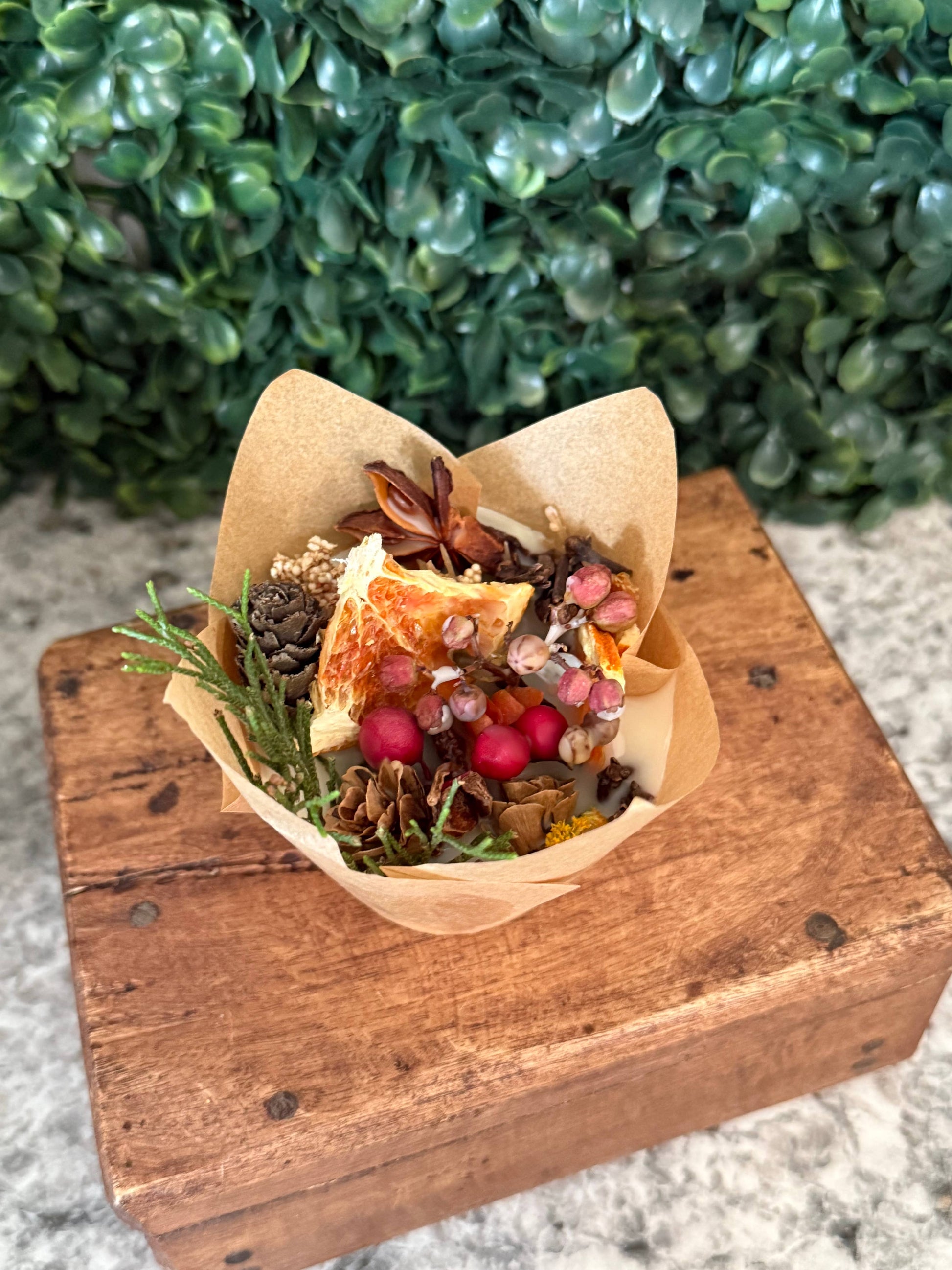 Fire Starters are all a combination of holiday and fall scents. There is no scent choice option available for these. They do look great as decor and the wick can be cut back to where it is not visible. Fire Starters come in a box of four.